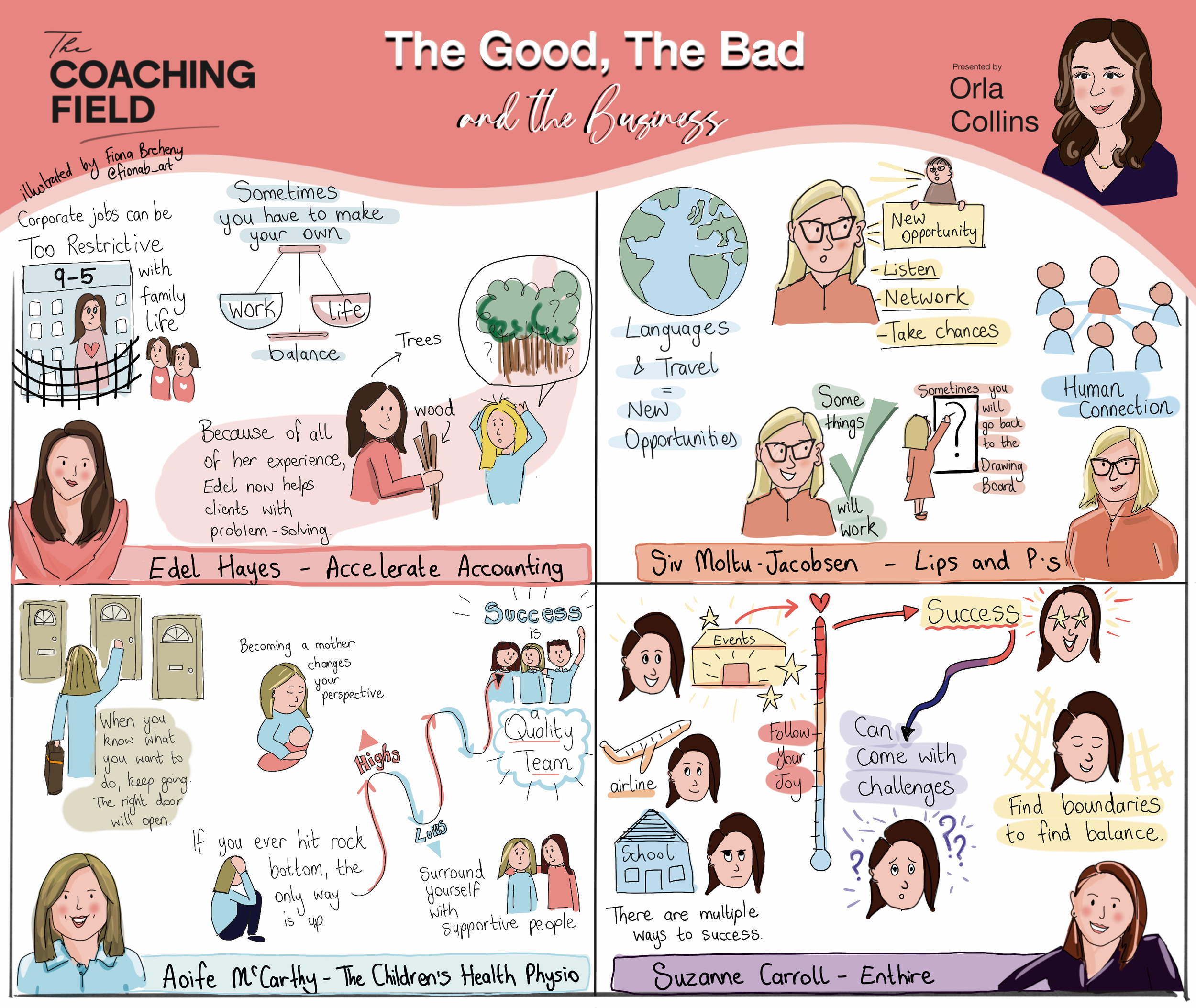 24.04.2026 - Orla brought together 4 successful business women and each spoke about her life in business. As they were speaking, Fiona was listening and drawing in real time.